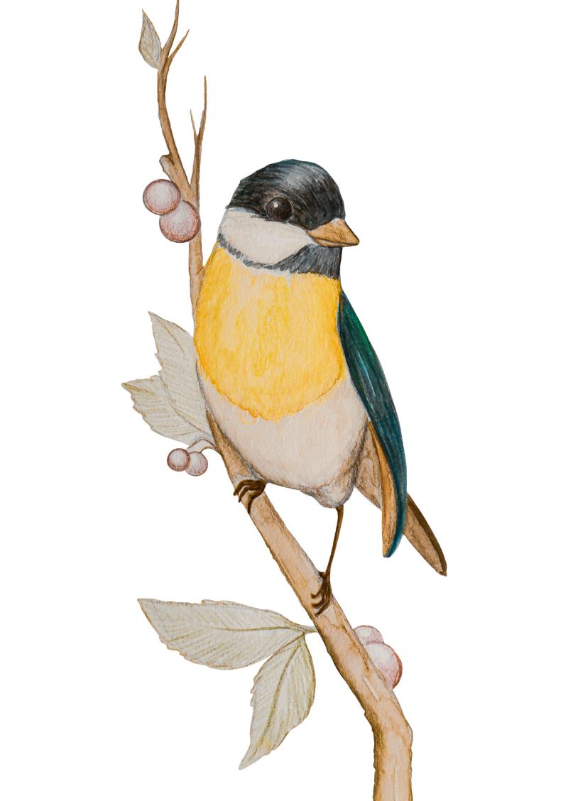 Sinica v toplih tonih je naslikana v tehniki akvarela. Za popestritev otroških sob ali ljubitelje ptic, ta reprodukcija bo v prostor vnesla toplino in spomin na slikanice iz otroštva.